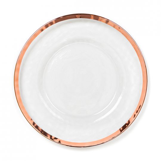The Hammered Alpine Glass Charger features a chic, textured design that brings a refined, artisanal touch to any table, making it perfect for upscale weddings, intimate dinner parties, and sophisticated corporate events.