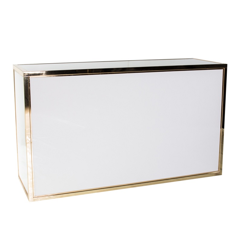 The Plexi Bar Frame uses contemporary clean lines to achieve a minimalist design while being accentuated by its steel outline. These bars are offered with either a silver or gold framing, which makes them versatile and ready to be used in any event. They can also be rigged with colored LED lights which would heighten the experience and add excitement of your next event.