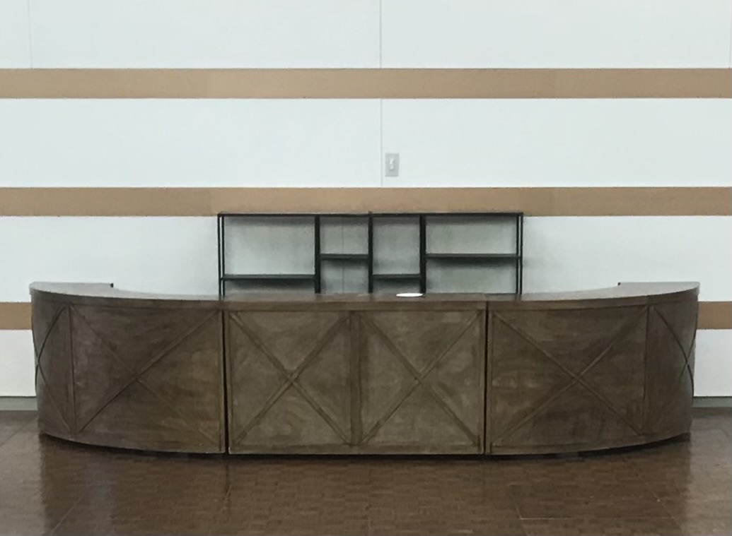 The Serpentine Vineyard Bar has a sleek wooden design that will fit perfectly with the theme of your rustic event. Pair our serpentine vineyard bar with our rustic dining collection to complete the look.